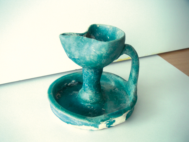 creux entoure le bec et supporte un abat-jour. L’huile coule vers la